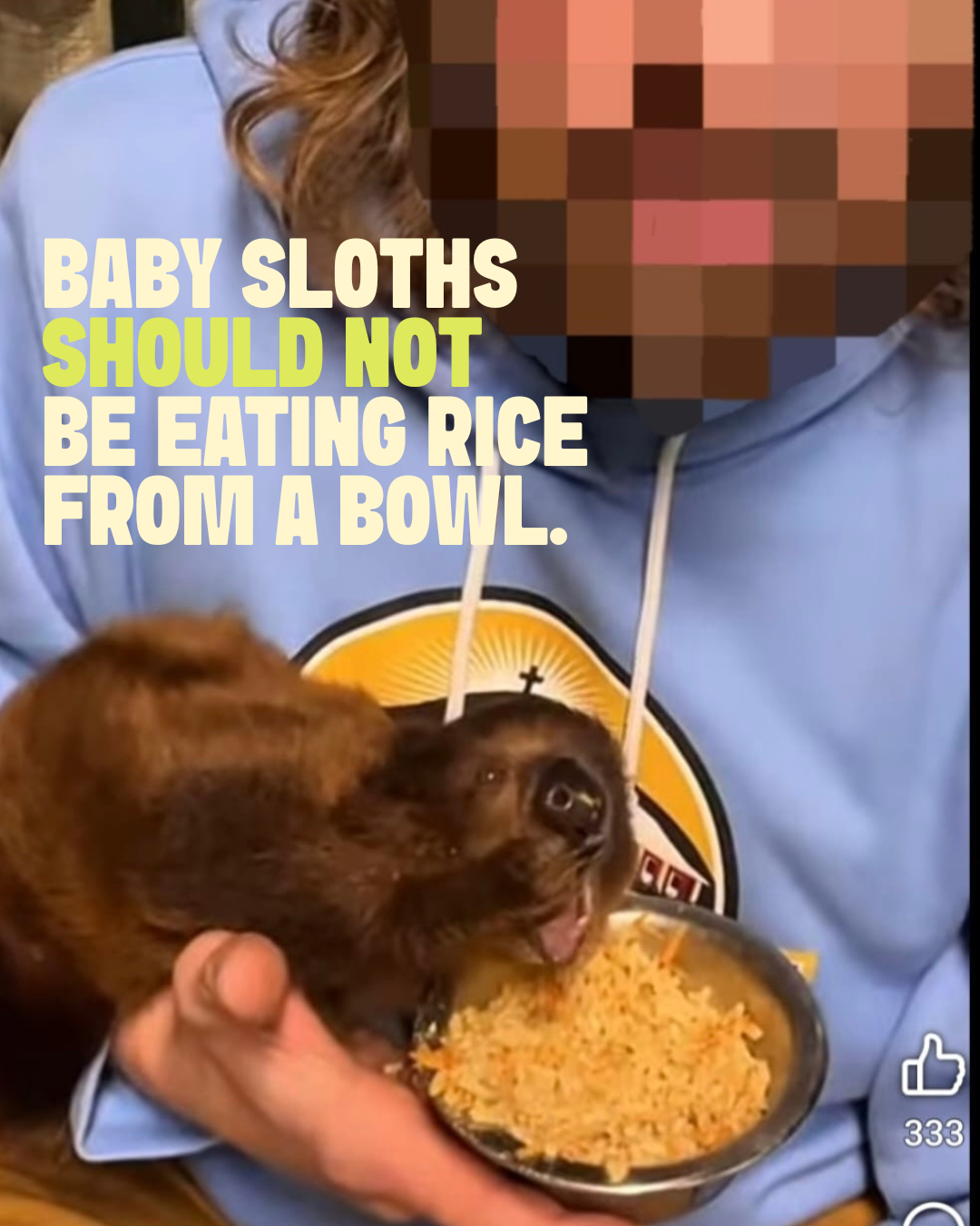 - Is the sloth being treated like a hot potato? Being passed around so everyone can hold them? This is not ethical.