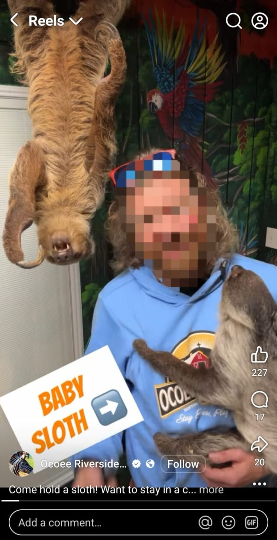 - Where did their sloths come from? As this article highlights, sloths are being removed from the wild for tourist interactions. This is unethical.