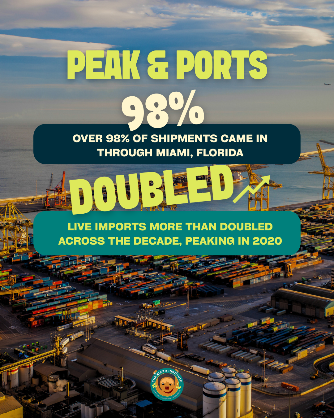 Sloth World identifies Pete Bandre as its “Vice President, Sloth Specialist, and Head of Animal Care.” Bandre is also the administrator of a Facebook page focused on private sloth ownership and captive husbandry. Public business records additionally list Bandre as a former CEO of Incredible Pets Inc., a U.S. company advertising sloths for sale to private buyers. According to publicly accessible U.S. wildlife import data, Incredible Pets Inc. imported 80 sloths into the United States between 2011 and 2021, making it one of the largest documented importers of these animals during that period.