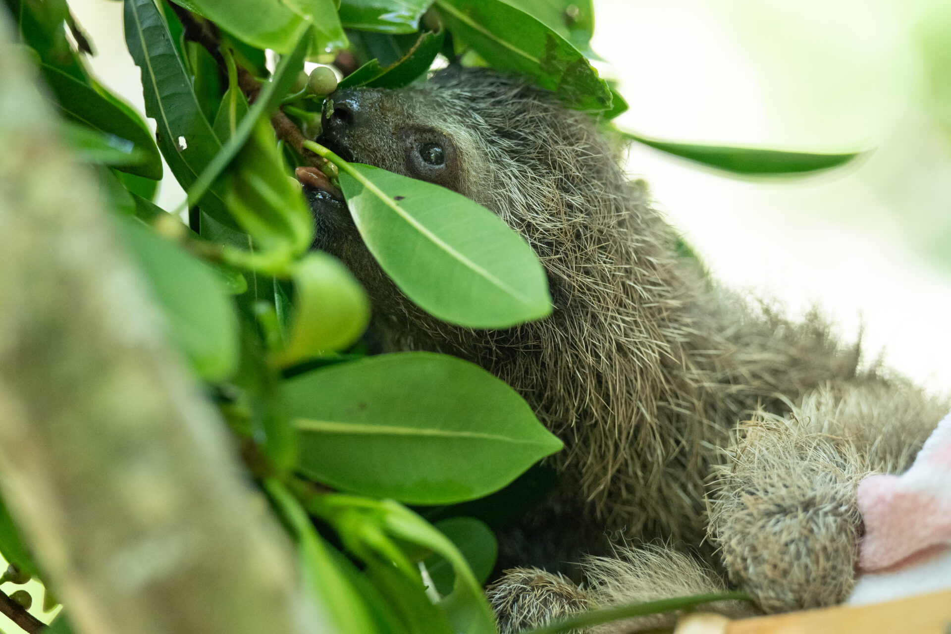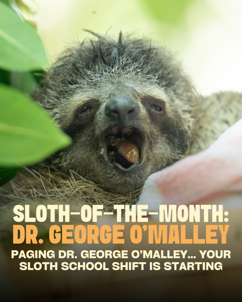 Slowly but surely, he started gaining weight. His breathing improved. His strength returned. Today, George is thriving in our nursery and working his way through what we affectionately call “sloth school.”