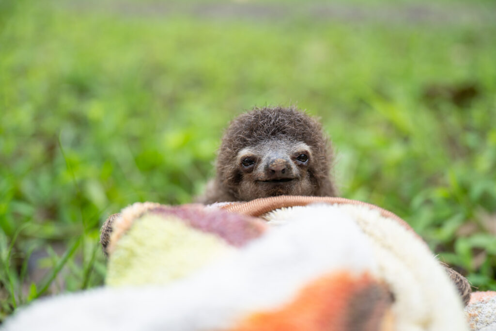 That baby was only about two weeks old. Good Samaritans quickly stepped in and brought the injured orphan to The Sloth Institute, giving him a chance he otherwise would not have had.